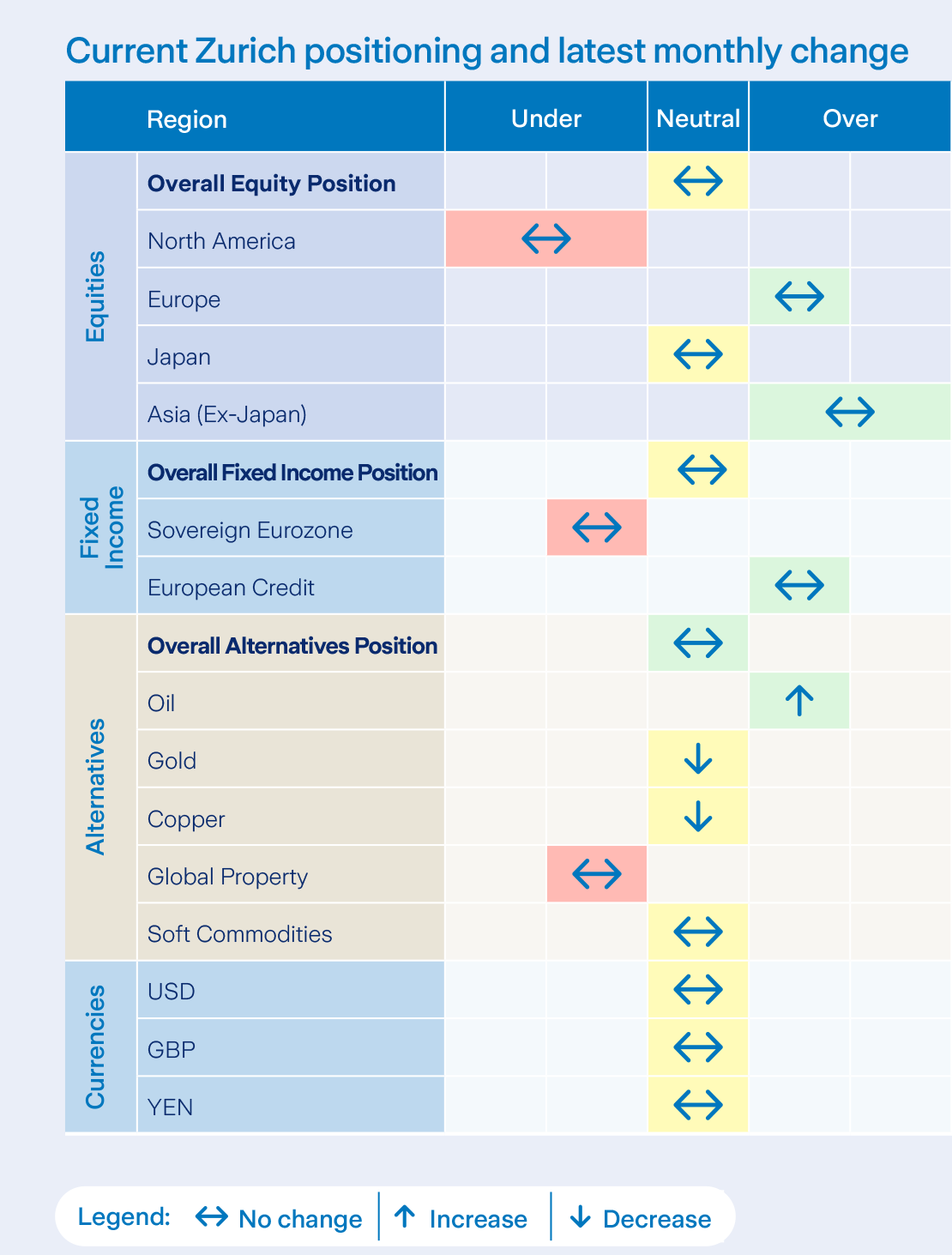 At the end of January, we reduced our allocation to Alternatives to essentially neutral in the Active Asset Allocation Fund. This was done via the sale of Gold and Copper. The proceeds were invested in oil and cash. This brought oil to modestly overweight.