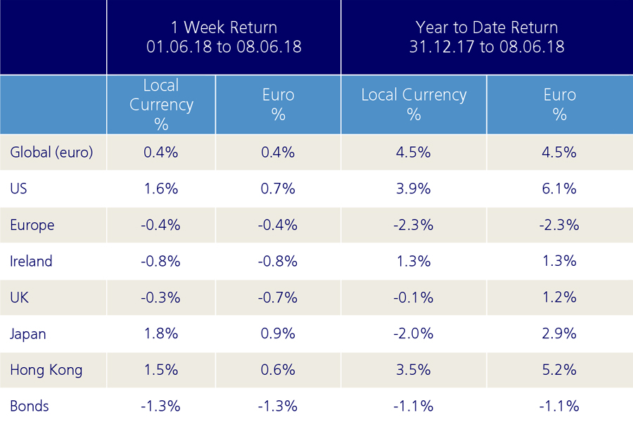 Bond yields (which move inversely to price) in general rose last week reflecting diminishing worries over Italy, more hawkish commentary from the ECB, and strong economic data from the US – where personal and construction spending was stronger and job openings tighter. US equities also proved to be resilient in the face of the political talk, focusing on the underlying fundamentals to finish the week higher.